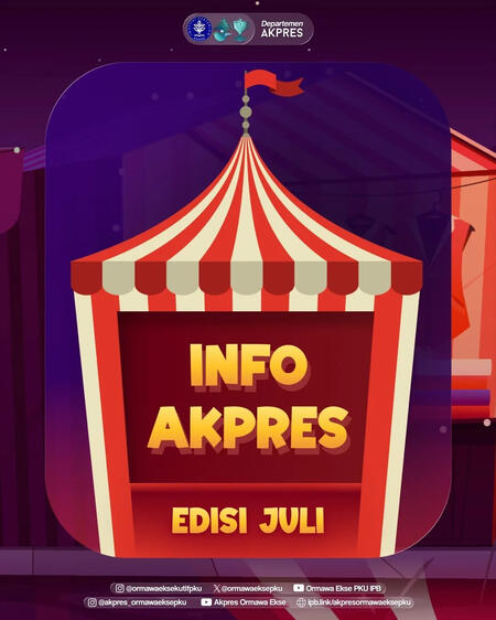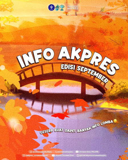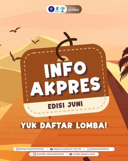 Info Akpres merupakan kegiatan penyampaian informasi terkini tentang lomba, seminar, dan kegiatan akademik lainnya melalui postingan Instagram Akpres. Kegiatan ini bertujuan meningkatkan kesadaran dan partisipasi mahasiswa dalam kegiatan akademik, serta menjadi wadah pusat informasi kegiatan akademik yang aktif dan terpusat.